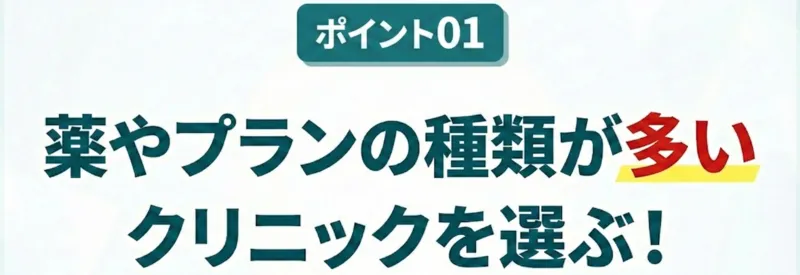 症状に合わせた治療には、多くの容量を揃えるクリニックが安心!