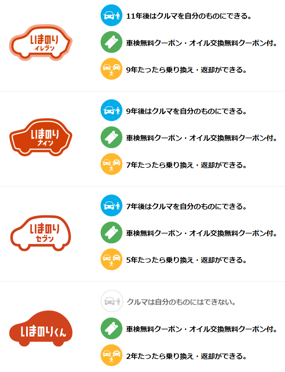 - 車種、リース期間、使い方の自由度