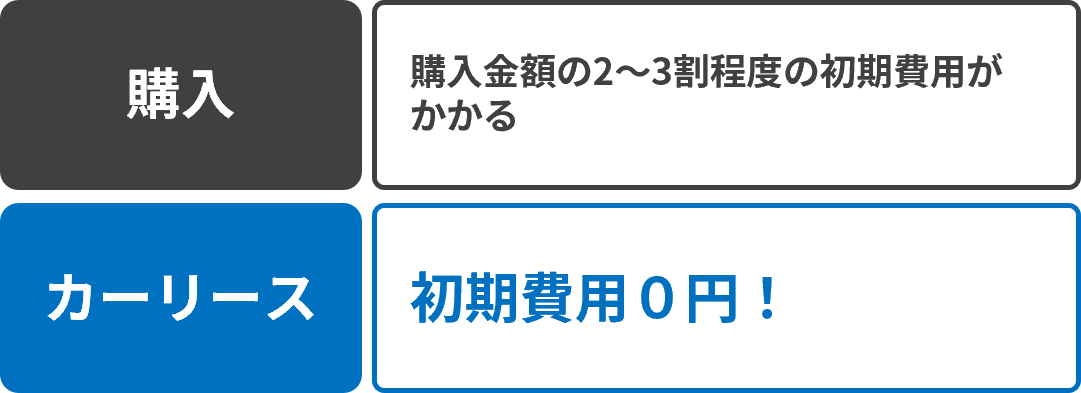 しかし、カーリースの場合、契約満了時の予想される下取り価格である「残価」を設定し、車両本体価格から差し引くため、購入する場合より車両本体価格を安くすることができます。