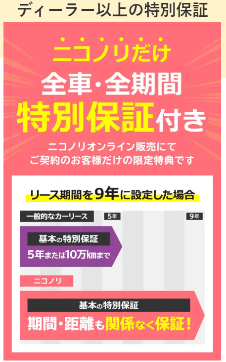 ニコノリは、基本プランにロードサービスまで付いていたり、保証期間延長やガソリン代5円引きの特典など充実はバツグン。