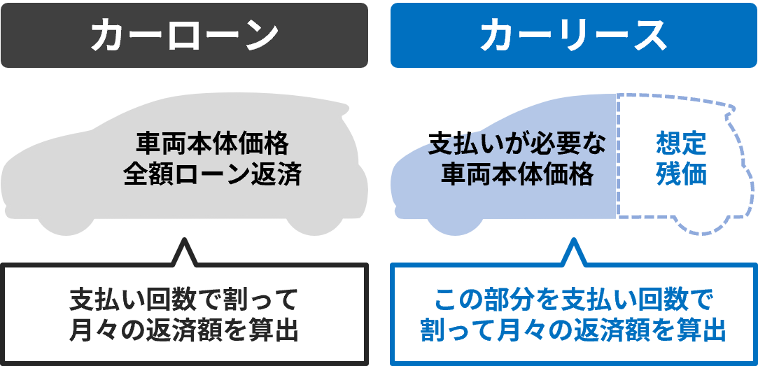 カーリースには「残価設定」があることで、車両本体価格は購入する場合よりも安くなります。
