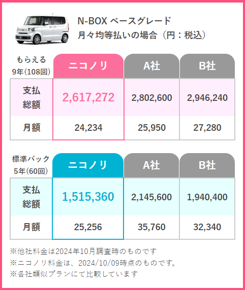 それぞれに違った強みがあり、最適な会社はその人の状況によって異なりますが、徹底比較にもとづいて総合的にオススメできるカーリース会社は「ニコノリ」です。