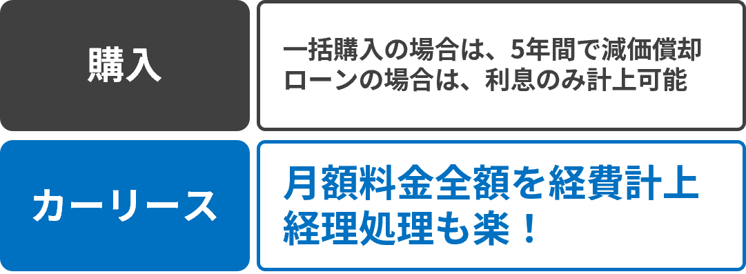 しかし、カーリースの場合、毎月のリース料金全額を経費として計上できるうえ、煩雑な減価償却の手続きも不要です。