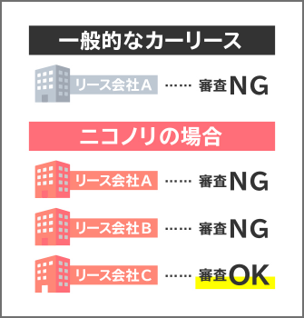 ニコノリは提携信販会社が3社あり、他のカーリースと比べて、審査通過の可能性が高いのが特徴です。