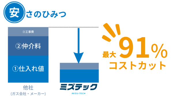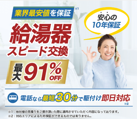 給湯器価格 | 最大91%OFF (他社見積もりが必要) |