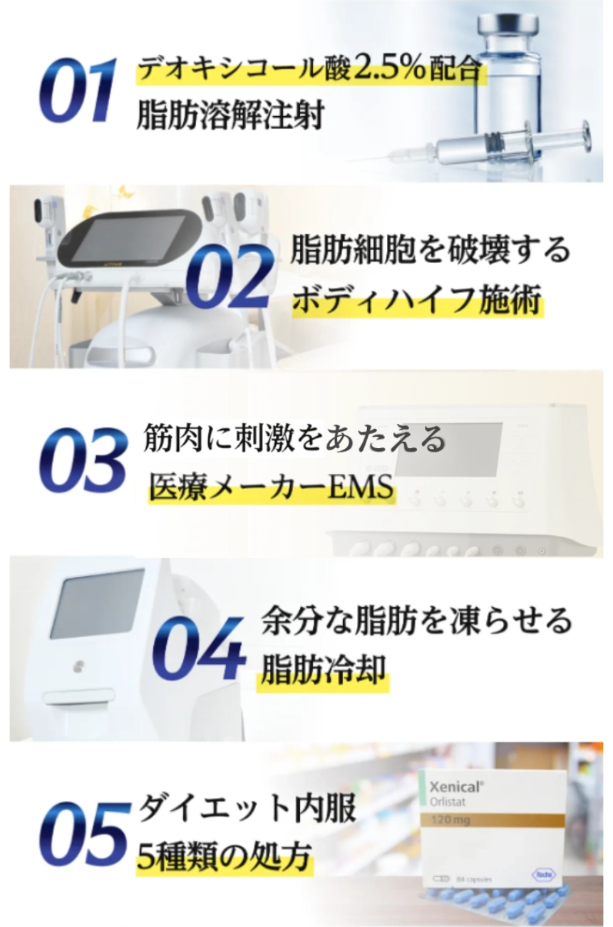 さらに、1つの施術に偏らず、複数の医療痩身メニューを組み合わせられます。