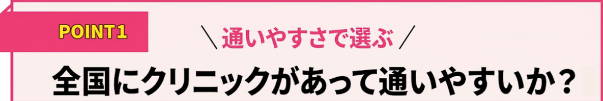 そのため、予約のとりやすさや通えるクリニックの多さは、クリニック選びでしっかり確認したいポイントです。