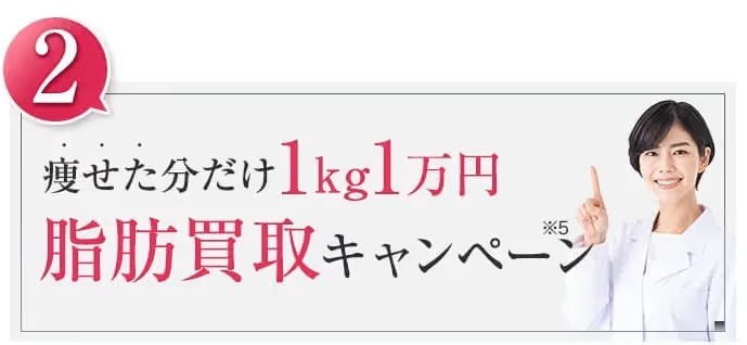 ![]() 15ヶ月分0円*1 1kg1万円で脂肪買取*1 モニター割最大79%OFF 58kg以上の方最大10万円OFF*2 1週間以内のご来院で5000円分のアマゾンギフト券プレゼント |