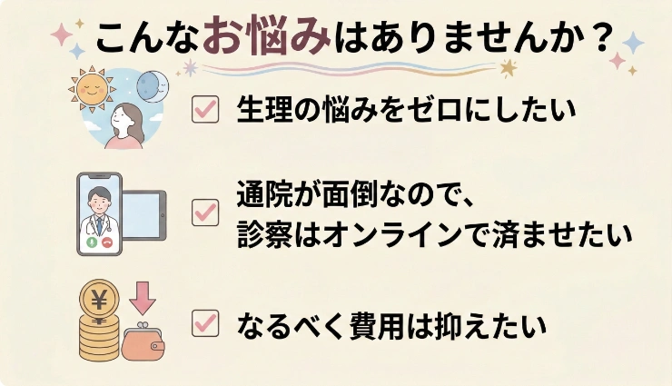 スマルナ : *1 初めてスマルナをご利用の方で12シートー括決済プランを選択した場合に適用。(お一人様一回限り有効)※初回の決済総額¥17,760※上記金額で購入するためにはクーポンコードの入力が必要です。決済時に必ず「SM2026」とご入力ください。※クーポンの併用不可 *2 低用量ピル・超低用量ピル12シート一括プランの場合は0円。その他は550円(税込) *3 診療件数は2019年8月~2025年6月の期間における診療プラットフォーム「スマルナ」を利用した診療の実績(全診療科目の発送実績及び診療件数を含む)です。診療は提携先医療機関が行います。