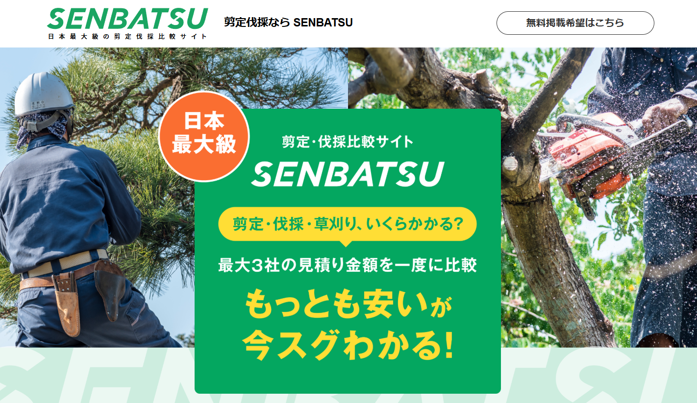 地域や樹木の状態に応じたベストな業者を紹介してくれます。 無料で利用できるため、時間もお金も無駄にしません。